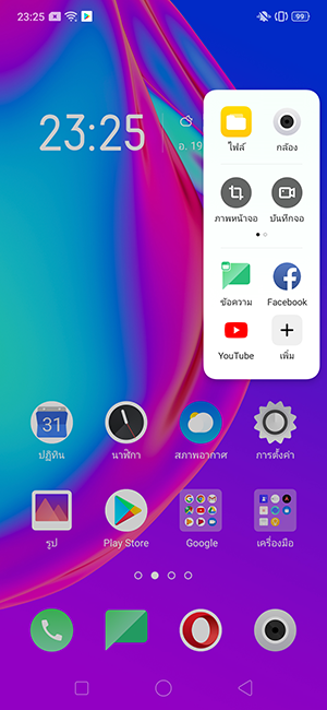 เมนูลัด : จากหน้าโฮมหรือหน้าจอหลัก เราสามารถปัดเรียกแถบเมนูลัดออกมาจากขอบหน้าจอด้านขวา เพื่อเรียกใช้งานฟีเจอร์พื้นฐานอย่าง จับภาพหน้าจอ, บันทึกภาพหน้าจอ หรือเข้ากล้องถ่ายรูปได้ทันที ซึ่งก็ทำให้เรียกใช้งานได้ง่ายและสะดวกเหมือนกัน