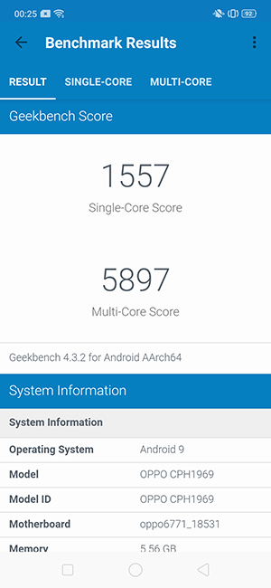 - ทดสอบด้วยแอปฯ GeekBench 4 ได้คะแนน Single Core 1557 และ Multi Core 5897 คะแนน