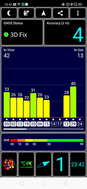 - การจับสัญญาณทดสอบด้วย GPS Tester จับสัญญาณค่อนข้างดี (สังเกตจากแถบเขียว)