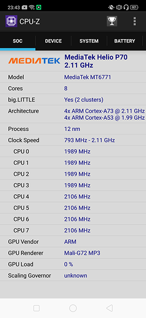 - CPU MediaTek Helio P70