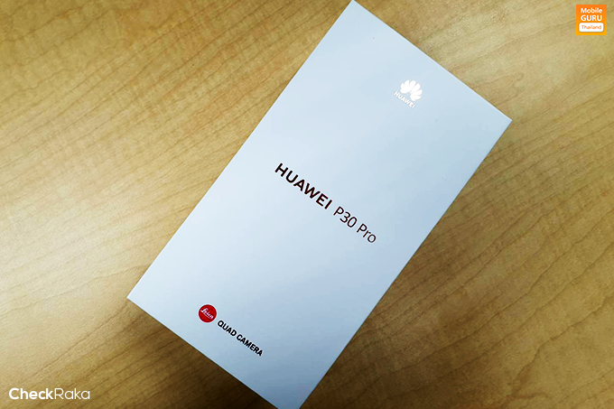 กล่องของ Huawei P30 Pro มาในโทนสีขาวทั้งกล่อง ด้านหน้ามีชื่อรุ่นสลักเป็นสีทองเด่นชัด และแน่นอนว่ายังคงมีโลโก้ LEICA เหมือนทุกครั้ง เพียงแต่ครั้งนี้เปลี่ยนจาก Triple Camera มาเป็น Quad Camera