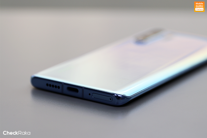 ด้านล่างตัวเครื่อง มีช่องถาดซิมการ์ดแบบ Hybrid SIM, พอร์ตเชื่อมต่อ USB-C และลำโพงเสียงตัวเครื่อง