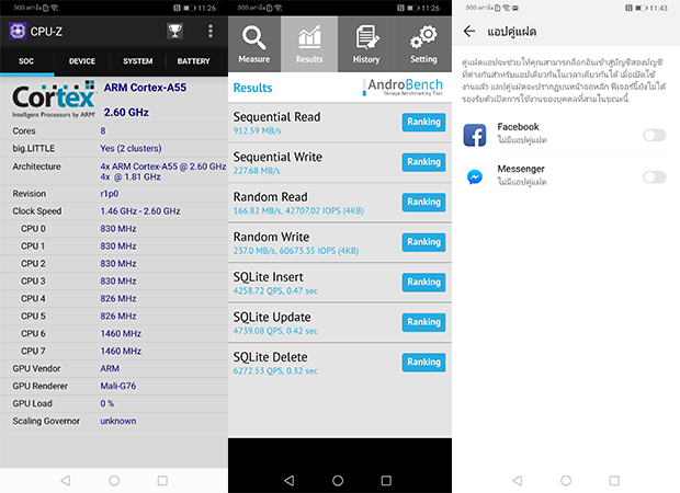 - ทดสอบด้วยแอปฯ AnTuTu Benchmark ได้คะแนน 279,430 คะแนน
