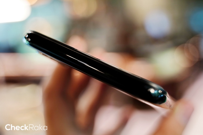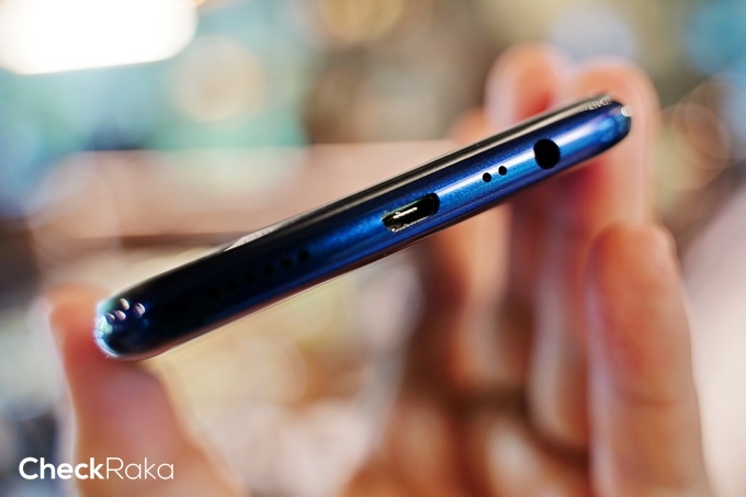 ด้านบนเรียบๆ ส่วนด้านล่างมีไมโครโฟน, พอร์ท MicroUSB 2.0 และลำโพงเสียงดังมีมิติ ส่วนด้านซ้ายมีถาดใส่ซิม และปุ่มปรับลดระดับเสียง ทางขวาจะมีปุ่ม Power