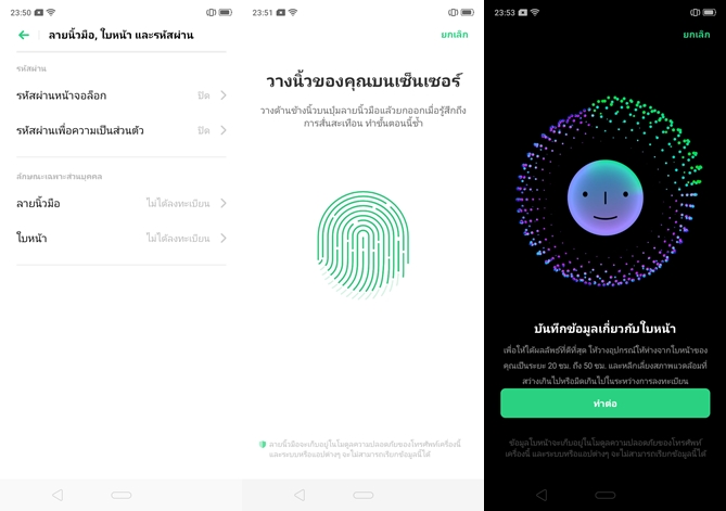 เซ็นเซอร์สแกนลายนิ้วมือ จากการทดสอบมีความแม่นยำสูงครับ และรองรับสูงสุด 5 ลายนิ้วมือ และรองรับ Face Unlock สแกนใบหน้าอีกด้วย