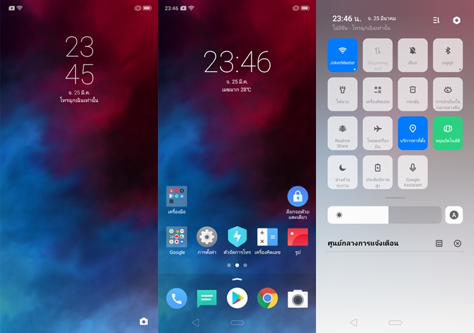 realme 3 ทำงานบน Android 9.0 Pie ครอบทับด้วย ColorOS 6.0 รุ่นใหม่ล่าสุด หน้าตา UI สวยงามมากครับ ดูเรียบง่ายยิ่งขึ้น สามารถปรับแต่งรูปแบบหน้าจอได้ 2 แบบ จะแสดงแอปพลิเคชั่นทั้งหมดบนหน้า Home หรือจะซ่อนแอปพลิเคชั่นก็ได้ และมาพร้อม Hํyper boost ช่วยในการจัดการทรัพยากรบนตัวเครื่อง ในหน้า Home ด้านซ้ายสุดจะเป็นระบบผู้ช่วยอัจฉริยะ Smart Assistant เป็นในส่วนของการตั้งค่าด่วนต่างๆ แอปพลิเคชั่น, สภาพอากาศ, โปรแกรมนับก้าว, นัดหมายและแจ้งเตือน, รายชื่อติดต่อด่วน