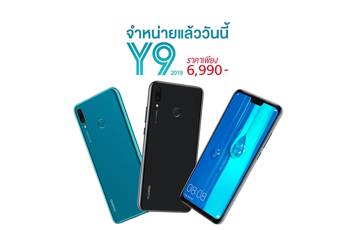 Huawei Y9 2019 วางจำหน่ายเพียงรุ่นเดียวเช่นกัน กับราคา 6,990 บาท พร้อมสีตัวเครื่องทั้งหมด 3 สี คือ สีดำ, สีม่วง และสีฟ้า