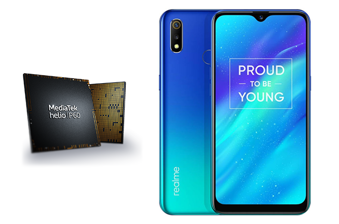 realme 3 ใช้ชิปประมวลผล Octa-core MediaTek Helio P60 ความเร็ว 2.0GHz ทำงานร่วมกับ GPU Mali G72 MP3 ซึ่งเป็นชิป CPU ระดับ Mid-End ของทาง MediaTek ที่ก่อนหน้านี้จะนิยมใส่มาให้กับสมาร์ทโฟนราคาหมื่นต้นๆ โดยให้คะแนนบนแอปฯ Antutu Bechmark อยู่ที่ประมาณ 129,xxx คะแนน