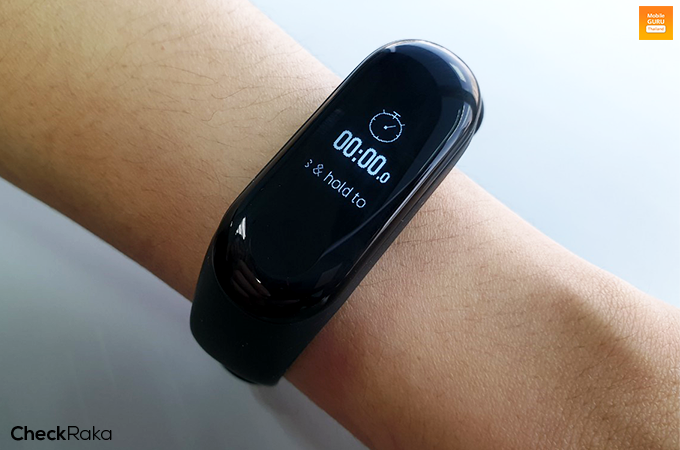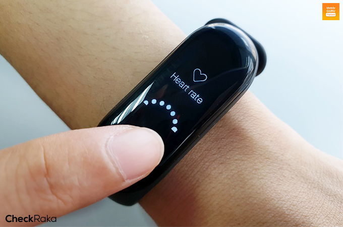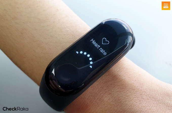 ส่วนการตรวจวัดการเต้นหัวใจแบบแมนนวล ทำได้เพียงแตะปุ่มทัชใต้หน้าจอค้างไว้แล้วปล่อย ตัว Mi Band 3 ก็จะตรวจวัดให้ทันที โดยใช้เวลาในการตรวจวัดอัตราการเต้นหัวใจอยู่ที่ประมาณ 1 - 2 นาที เท่านั้น