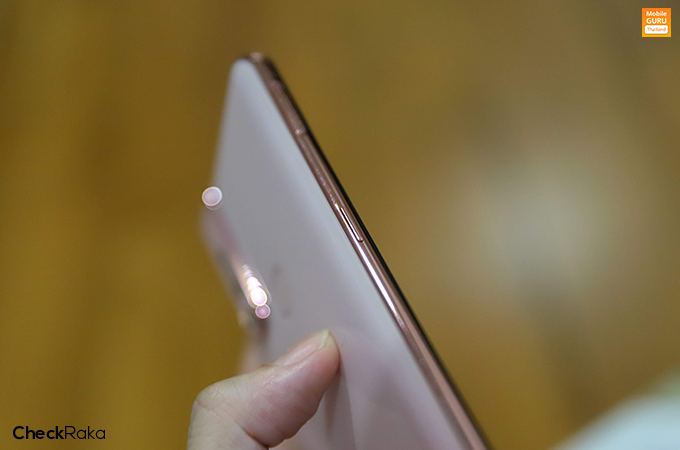 ตัวเครื่องของ Vivo V15 Blossom Pink จะเป็นการผสมผสานระหว่างสีชมพูบอสซัมกับสีทองโรสโกลด์ ทำให้ตัวเครื่องเวลาเหลือบกับแสงที่ผ่านมาโดนบริเวณขอบโลหะรอบตัวเครื่อง หรือฝาหลังที่มีการไล่เฉดสีแบบ Gradient จะยิ่งทำให้ตัวเครื่องดูหรูหรายิ่งขึ้น ในขณะที่การจัดวางปุ่มและเซ็นเซอร์ต่างๆ ยังคงเหมือนรุ่นปกติทุกประการ