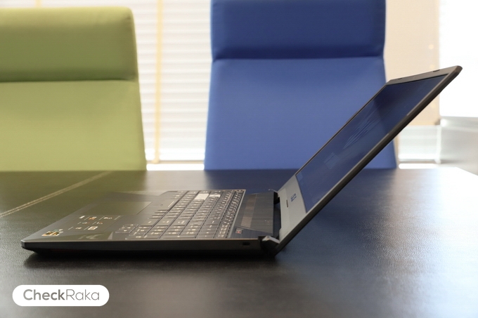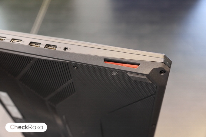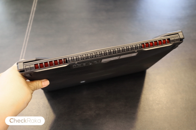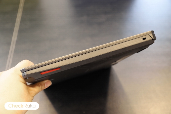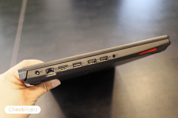 ด้านซ้ายประกอบด้วย 1 x พอร์ตชาร์จ, 1 x RJ-45 jack, 1 x HDMI 2.0, 1 x USB 2.0, 2 x USB 3.0 Gen 1, 1 x 3.5 มม. headphone และด้านขวาจะมี 1 x Kensington lock
