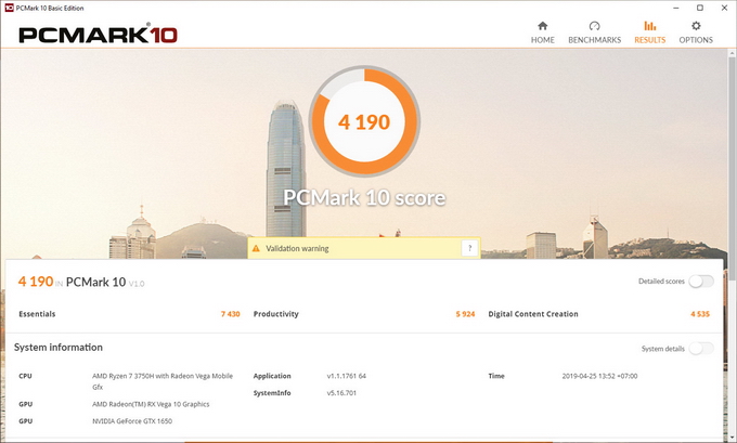 ทดสอบด้วยโปรแกรม PCMark 10 ทำคะแนนอยู่ที่ 4,190 คะแนน