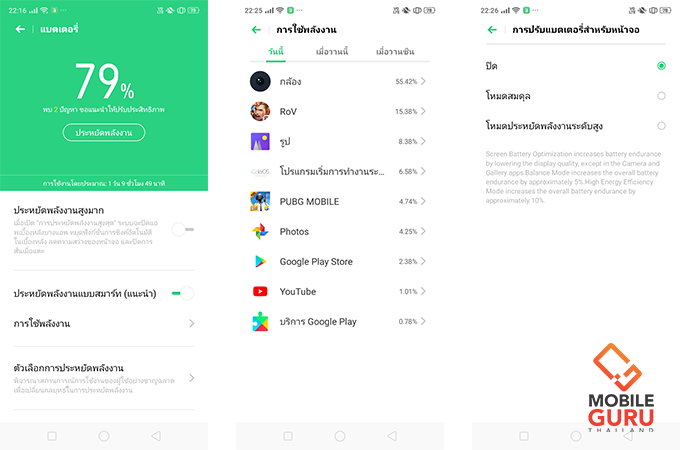 เพราะตัวระบบจะมีการปรับลดการทำงาน การกินไฟ ของฮาร์ดแวร์กับซอฟท์แวร์ไปพร้อมๆ กันทำให้ประหยัดพลังงานขึ้น ซึ่งจากที่ผมลองใช้งานดูในหนึ่งวันก็รู้สึกว่ามันก็อึดอยู่นะ แต่ยังไม่สุดเท่าไร เพราะผมลองชาร์จเต็มมาตั้งแต่เช้า และก็ลองใช้งานทั่วไป เล่นเกมบ้าง ฟังเพลงออนไลน์ คุยไลน์ เล่นเฟสแบบปกติในหนึ่งวัน แบตเตอรี่ก็อยู่ได้ถึงประมาณช่วงเย็นๆ เท่านั้น ก่อนที่จะขึ้นเตือนแดง
