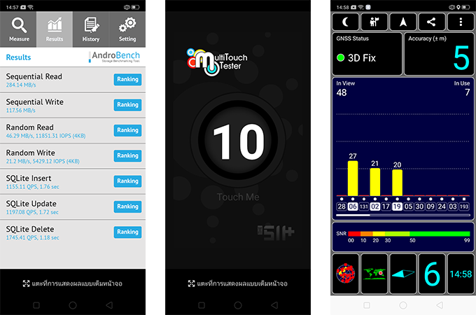 - ทดสอบด้วยแอปฯ MultiTouch Tester รองรับการสัมผัสสูงสุด 10 จุด