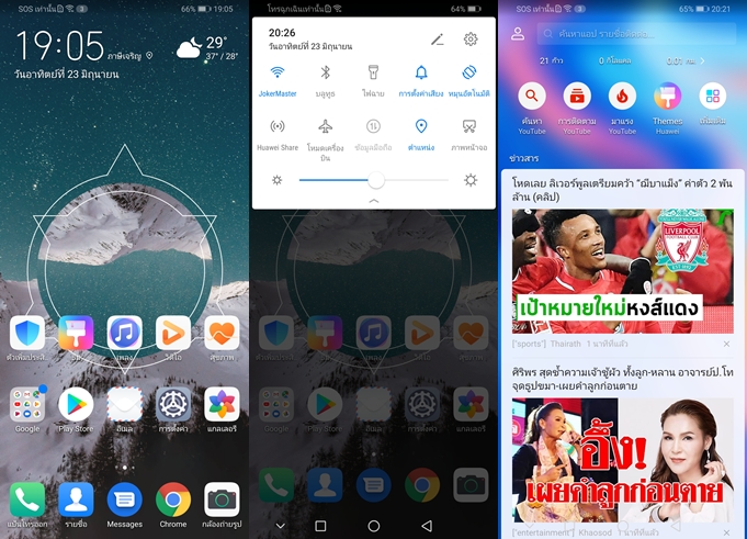 Huawei Y9 Prime 2019 ทำงานบน Android 9.0 Pie ครอบทับด้วย EMUI 9.0.1 ใหม่ล่าสุดของ หัวเว่ย หน้าตาสวยงาม รวดเร็วและลื่นไหลดีมาก หน้าซ้ายสุดจะเป็นในส่วนของ HiBoard จะรวมเอาแอปฯ ด่วนที่เราใช้งานเป็นประจำ การนับก้าว และการเผาผลาญแคลลอรี่ รวมทั้งในส่วนของข่าวสารที่จะดึง Feed จากเว็บข่าวเด่นๆ มาให้เราติดตาม ซึ่งสามารถปรับแต่งและปิดในส่วนที่ไม่ต้องการได้เองครับ (รวมถึงปิดในส่วนของ HiBoard ไม่ให้แสดงก็ได้) สามารถปรับความละเอียดของหน้าจอโดยอัตโนมัติเพื่อประหยัดพลังงาน (HD+ และ Full HD+) รวมทั้งปรับแต่งโทนสีของหน้าจอ และมีฟีเจอร์ถนอมสายตามาให้