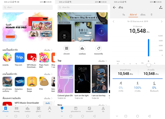 และแน่นอนครับ บริการดีๆ จาก Huawei มีมาให้แน่นเครื่อง ไม่ว่าจะเป็น AppGallery แอปสโตร์ของทาง หัวเว่ย ที่มาพร้อมข้อเสนอดีๆ มากมายสำหรับผู้ใช้หัวเว่ยโดยเฉพาะ Themes Store รวม Themes, Wallpaper และ Font สำหรับ EMUI เอาไว้อย่างมากมาย มีทั้งฟรี และเสียเงิน และ Health แอปฯ นับก้าว และควบคุมการออกกำลังกาย ทำให้คุณไม่ต้องซื้อ Fitness Tracker เพียงพกสมาร์ทโฟนก็สามารถนับก้าว รวมทั้งเช็คการเผาผลาญแคลอรี่อย่างคร่าวๆ ได้เลย และโหมดขับขี่ ที่จะช่วยให้คุณปลอดภัยมากยิ่งขึ้น ไม่โดนรบกวนจากสายเรียกเข้า (สายที่เรียกเข้าจะได้รับข้อความเสียง หรือ SMS แทน) และ HiCare รวมบริการหลังการขายต่างๆ ของหัวเว่ย สามารถตรวจราคาอะไหล่ และตรวจสอบความคืบหน้าในการส่งซ่อม สามารถแชทเพื่อสอบถามปัญหาต่างๆ และตรวจสอบโปรโมชั่น รวมทั้งเช็คข้อมูลประกันของสมาร์ทโฟนของเราได้อย่างง่ายดาย