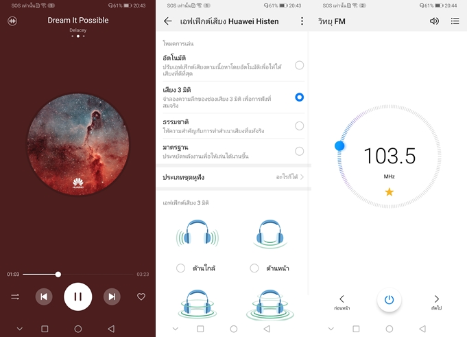 เครื่องเล่นเพลงจะมาพร้อมฟีเจอร์ปรับแต่งเสียง Huawei Histen คุณภาพเสียงผ่านหูฟังจัดว่าไม่เลวทีเดียวครับ ส่วนผ่านลำโพงเสียงที่ได้เพราะดี และไม่แตก รวมทั้งรองรับวิทยุในตัวครับ