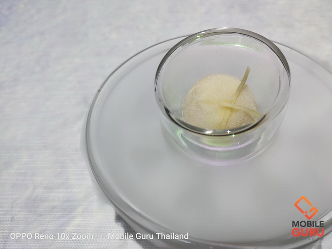 แวะล้างปากด้วย Sorbet สับปะรดใส่ขิง อร่อยสดชื่นล้างปากดีมาก ผมชอบการนำเสนอมากๆ สวยงามมากจริงๆ โดยเขาจะให้เราเอาน้ำร้อนราดไปในขอบจานเพื่อให้เกิดควันจากน้ำแข็งแห้ง กระจายไปทั่วโต๊ะ สวยงามสุดๆ