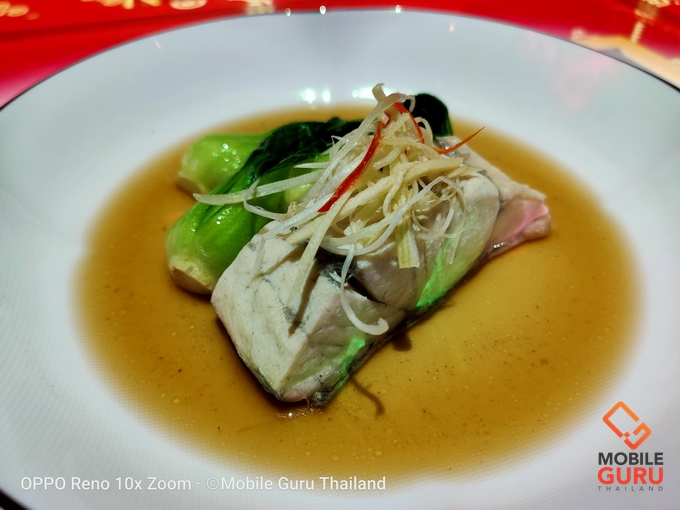 มาถึงจานหลักที่ China คุ้นลิ้นเลยครับเพราะมันคือ Steamed seabass & bok choy, soy & ginger เนื้อปลากระพงนึ่งซีอิ๊ว รสเข้มข้นอร่อยมากๆ โดยจานนี้จะมาพร้อมข้าวสวยที่หุงมาดีมากครับ นุ่มอร่อยมากๆ จนผมสงสัยเลยว่าใช้ข้าวยี่ห้ออะไร อยากเอาไปหุงทานที่บ้านบ้าง
