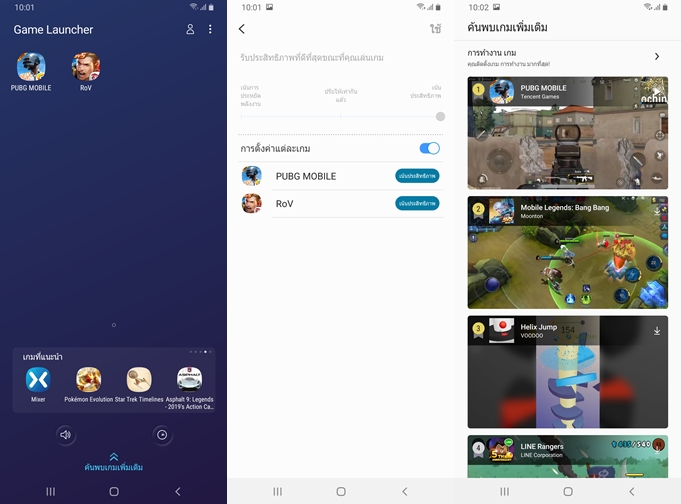 Game Launcher ฟีเจอร์รวมเกมทุกเกมบนสมาร์ทโฟนของเราเอาไว้ที่เดียว ปิดการแจ้งเตือนขณะเล่นเกม, ประหยัดพลังงานขณะเล่นเกม รวมทั้งสามารถบันทึกคลิปวีดีโอระหว่างเล่นเกมเป็นต้น ผมทดสอบด้วยเกม ROV ค่าเฟรมเรตจะอยู่ที่ 54 - 61 FPS ลื่นไหลมากๆ รู้สึกเหมือนกำลังเล่นเกมบนสมาร์ทโฟนระดับเรือธงเลย และทดสอบด้วยเกม PUBG สามารถเปิด HD และค่าเฟรมเรทระดับสูงได้ เล่นได้ลื่นไหลน่าประทับใจมากครับ รวมทั้งรองรับระบบเสียง Dolby Atmos ยิ่งเพิ่มอรรถรสในการเล่นเกมให้มากยิ่งขึ้น