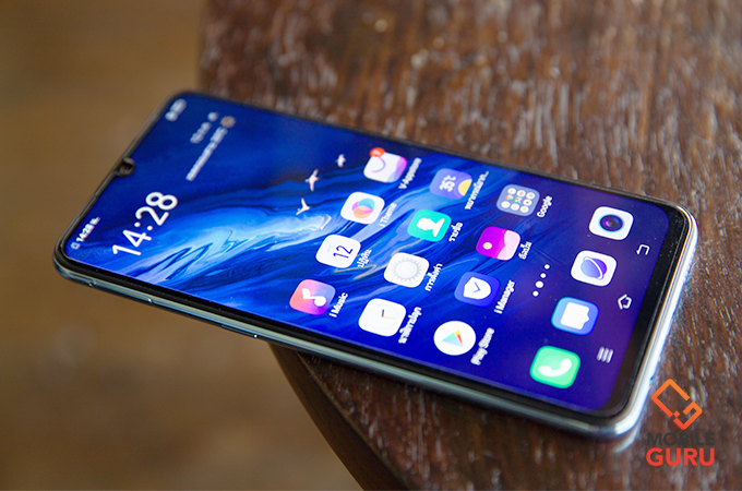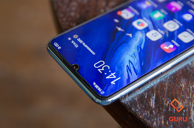 ด้านหน้าตัวเครื่อง มาพร้อมหน้าจอแสดงผล Super AMOLED Halo display ขนาด 6.38 นิ้ว ความละเอียด 2340 x 1080 พิกเซล (FullHD+) และมีกล้องหน้าความละเอียดสูง 32 ล้านพิกเซล (F2.0, AI Beauty)