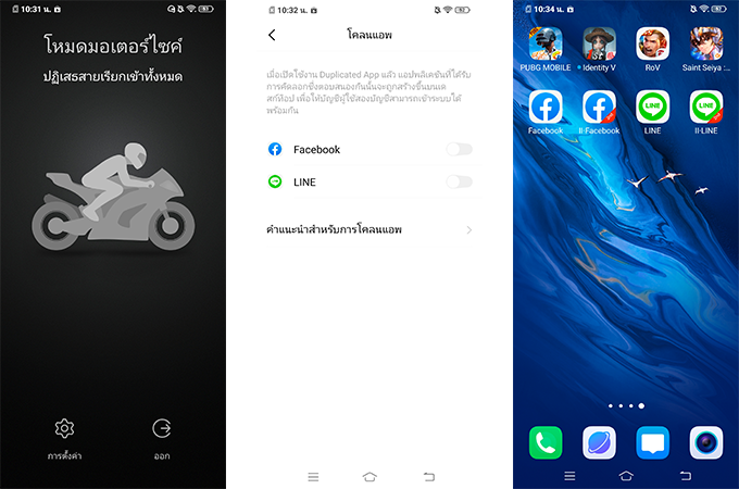 ฟีเจอร์เด่น (Multi-Tasking / Clone app, MotorBike mode)