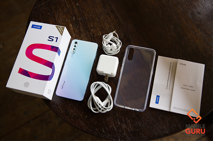 Vivo S1 มาพร้อมกล่องโทนสีขาว ด้านหน้ามีโลโก้ "S" ตัวใหญ่เด่นชัด ไม่ผิดรุ่นแน่นอน และบริเวณมุมขวาบนมีแถบแสดงรุ่น RAM 6GB และ ROM 128GB มาด้วย ตอนเลือกซื้อก็อย่าลืมสังเกตกันก่อนซื้อนะครับ จะได้ไม่ผิดรุ่น