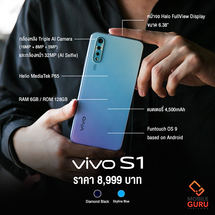 มาถึงไทยเรียบร้อยสำหรับ Vivo S1 สมาร์ทโฟนซีรีย์ S รุ่นแรกในไทยของ วีโว่ ภายใต้คอนเซ็ปท์ "Unlock Your Style" กับการปลดล็อครูปแบบเดิมๆ ไปสู่ความแปลกใหม่อีกขั้น ที่ทางวีโว่นำมาใส่บนสมาร์ทโฟนรุ่นนี้ ซึ่งเมื่อแรกจับต้องยอมรับเลยว่า ภาพในหัวมันรู้สึกได้ถึงความเข้ามือ สีสันตัวเครื่องสวยและหรู พร้อมทั้งสเปกและฟีเจอร์ต่างๆ ที่ใส่มามันช่างดูลงตัวไปหมด ไม่ว่าจะเป็นกล้องหลัง Triple camera ที่ทำงานด้วยระบบ AI เหมือนกับกล้องหน้าความละเอียดสูง 32 ใช้ AI ในการประมวลผลและทำงานด้วยเช่นกัน