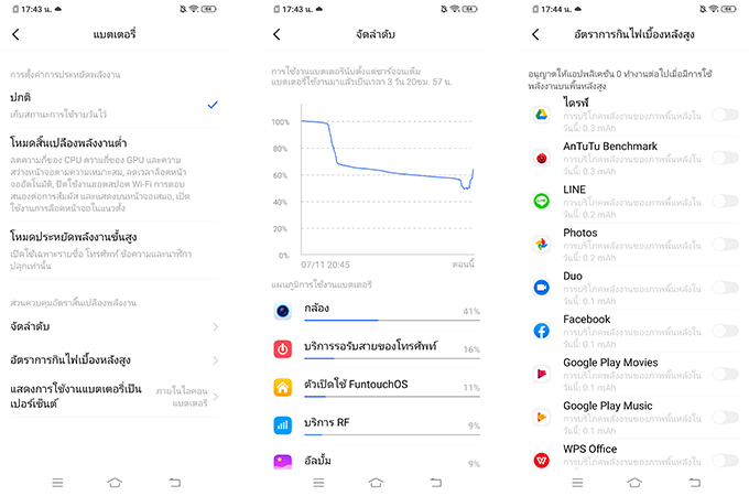 แบตเตอรี่เป็นอีกไฮไลท์สำคัญของรุ่นนี้เลยครับ เพราะว่าทางวีโว่ได้ใส่แบตเตอรี่ขนาดใหญ่ 4,500mAh มาให้ ทำให้การใช้งานยืนระยะได้ยาวนานมากๆ จากที่ผมลองใช้งานจริงในหนึ่งวัน โดยเริ่มจากเช้าช่วงเดินทางมาทำงานก็มีเปิดเพลงสตรีมมิ่ง เข้าดูโซเชียล คุยไลน์สั่งงานบาง รวมๆ ก็ 1-2 ชั่วโมง ช่วงกลางวันพักเที่ยงก็หยิบขึ้นมาคุยโทรศัพท์ เล่นเกม ถ่ายรูปอาหาร อีกประมาณ 1 ชั่วโมง ตกเย็นก็แบบที่เห็นในภาพเลยครับ เหลือแบตฯ อยู่ 64% เลยทีเดียว ผมนับว่าเป็นรุ่นที่แบตเตอรี่อึดไม่น้อยหน้าใครแน่นอน