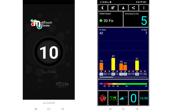 - การจับสัญญาณทดสอบด้วย GPS Tester จับสัญญาณได้ระดับปานกลาง (สังเกตจากแถบสี)