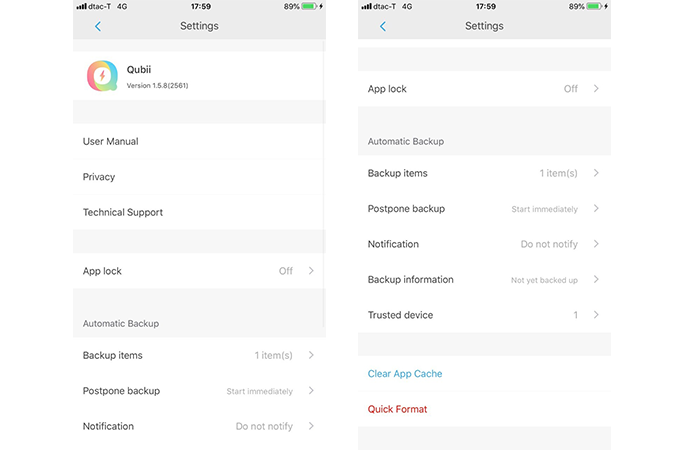 เราสามารถใช้งาน Qubii ร่วมกับแอปพลิเคชั่น Qubii เพื่อจัดการไฟล์ที่สำรองข้อมูลไว้ หรือเลือกใช้งานฟีเจอร์ต่างๆ แบบแมนนวลได้ด้วยตัวเอง ทำให้รูปแบบการใช้งาน Qubii กับการสำรองข้อมูลมีความยืดหยุ่นพอสมควร เพราะไม่จำเป็นต้องรอให้ตัวเครื่อง Auto Backup ตอนชาร์จแบตเตอรี่ให้อย่างเดียว