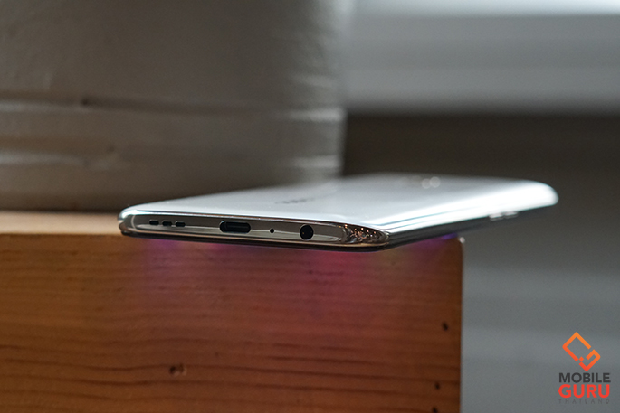 ด้านล่างของตัวเครื่องมีพอร์ตหูฟังขนาด 3.5 มิลลิเมตร, ไมค์สนทนา, พอร์ตเชื่อมต่อแบบ USB-C และลำโพงตัวเครื่อง