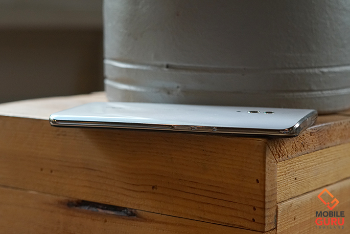 ด้านขวาของตัวเครื่อง มีปุ่มสำหรับเปิด-ปิดตัวเครื่อง (Power) และช่องสำหรับใส่ซิมการ์ดแบบ Dual SIM (2 slots)