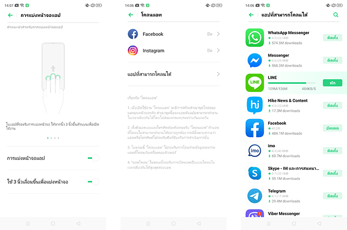 อีกหนึ่งความสามารถพื้นฐานที่หลายคนชอบและต้องถามถึงทุกครั้งจริงๆ กับฟีเจอร์โคลนแอปพลิเคชั่น ที่ทำให้เราล็อคอินบัญชีโซเชียล Facebook หรือ Line พร้อมกันได้สองบัญชี รวมถึงฟีเจอร์แบ่งหน้าจอใช้งานพร้อมกันสองหน้าจอ ก็ยังคงมีมาให้บน realme XT ด้วยเช่นกัน ไม่ได้โดนตัดไปไหน! ไม่ต้องกังวลไป