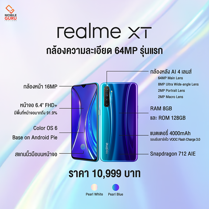 realme XT สิ้นสุดการรอคอยกันสักทีนะครับสำหรับสมาร์ทโฟนซีรีย์ X ของเรียลมี ที่หลายคนเฝ้ารอให้เข้าไทยกันมาตั้งแต่ realme X จนมาถึง realme XT รุ่นล่าสุด ซึ่งทาง เรียลมี ประเทศไทย ก็ตอบรับแฟนๆ ตัดสินใจนำเข้ามาบุกตลาดไทยอีกรุ่นในปีนี้เรียบร้อย