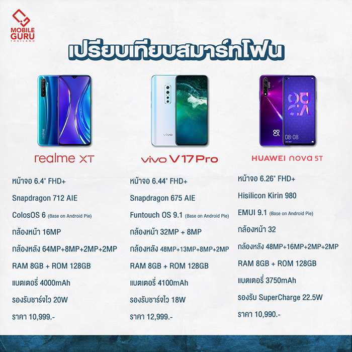 realme XT, Vivo V17 Pro และ Huawei Nova 5T