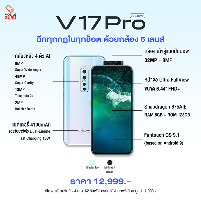 Vivo V17 Pro สมาร์ทโฟนกล้อง 6 เลนส์ (หน้า 2 หลัง 4) ที่สุดของการถ่ายภาพ วางจำหน่ายในราคา 12,999 บาท