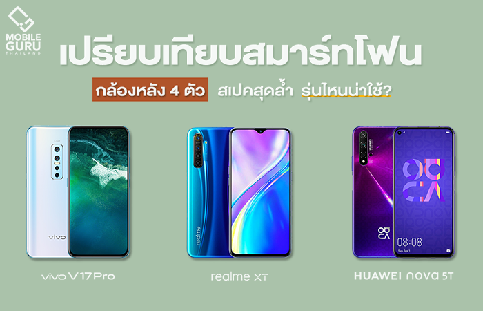 รีวิว เปรียบเทียบ realme XT, Vivo V17 Pro และ Huawei Nova 5T สมาร์ทโฟนกล้องหลัง 4 ตัว สเปคสุดล้ำ
