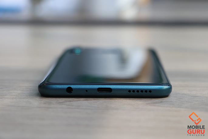 ด้านล่างของตัวเครื่องมีช่องเสียบหูฟังขนาด 3.5 มิลลิเมตร ไมโครโฟนสนทนา พอร์ตเชื่อมต่อแบบ USB-C และลำโพงเสียง