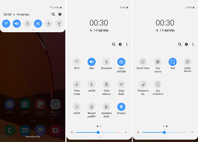 เมื่อปัดหน้าจอลงจะแสดงฟีเจอร์การใช้งานหลัก ๆ สามารถย่อ-ขยาย เพื่อให้แสดงมากขึ้น และเลือกปรับเปลี่ยนลำดับการแสดงผลได้ตามความต้องการ พร้อมแสดงการแจ้งเตือนการใช้งานหรือการอัปเดตข้อมูลต่าง ๆ