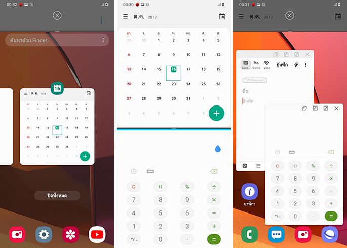 การแบ่งหน้าจอสำหรับการเปิดใช้งาน 2 แอปพลิเคชั่นบนหน้าจอเดียวกัน พร้อม ๆ กัน ก็ยังคงจัดเป็นฟีเจอร์เด่นที่เรียกว่าไม่มีไม่ได้ โดยสามารถเรียกใช้งานได้โดยการกดปุ่มมัลติทาส์กค้างไว้ แล้วเลือก เปิดในมุมมองแยกหน้าจอ หรือ เปิดในมุมมองป๊อปอัพ ก็ได้