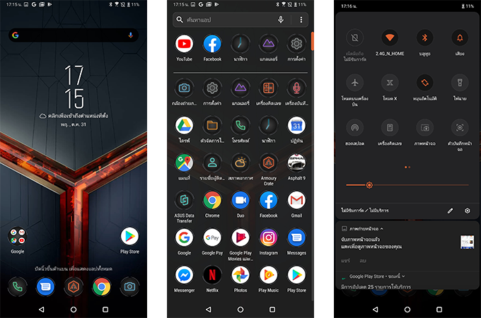 ส่วนใครที่ไม่ชอบความดุดันของ ROG UI ที่ติดเครื่องมาให้ ทางเอซุสเขาได้ใส่ Zen UI ซึ่งเป็นอินเทอร์เฟซที่อยู่บน Zenfone Series มาให้ด้วยนะ สามารถเข้าไปเลือกปรับกันได้ พอปรับแล้วก็ดูเบาลงพอสมควร ในขณะที่ภาพรวมของ ROG UI การใช้งานต่างๆ ไม่ได้ใช้งานยุ่งยากอะไรเลยครับ ถึงแม้ภายนอกอาจดูแบบนั้นเพราะความเป็นเกมมิ่งโฟน แต่จริงๆ แล้วการใช้งาน การเรียกเมนูต่างๆ เหมือนใช้งานบนสมาร์ทโฟนแอนดรอยด์หรือ Zenfone เลยล่ะ