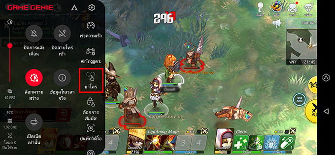 ส่วนใครที่เล่นเกมแนว ROM อันนี้น่าจะชอบกัน เพราะ ROG Phone II เขามีโหมดตัวช่วยในการเล่นเกมที่ชื่อว่า "Game Genie" ซึ่งเป็นฟีเจอร์ที่ทำให้เราสามารถเลือกปรับแต่งการแสดงผลและการตั้งค่าต่างๆ ในตัวเกมได้ในระดับเทรินโปรเลย และหนึ่งในนั้นคือ มี "Macro" โหมดมาให้ด้วย!! ใครที่เป็นสายฟาร์มตั้งมาโครแล้วทิ้งไว้เหมือนบน NOX ที่เราใช้บน PC ได้เลยนะ ถูกใจสิ่งนี้มากๆ เลยล่ะครับ