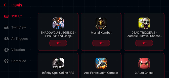 - ฟีเจอร์สำหรับเล่นเกม : Air Triggers, Game Genie