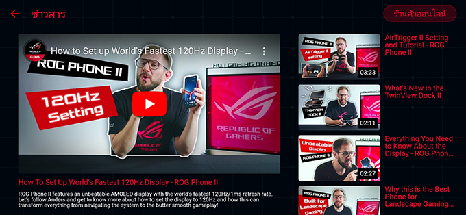 หนึ่งในไฮไลท์ของ ROG Phone II คือ การที่มาพร้อมหน้าจอแสดงผล Refresh rate สูงสุดถึง 120Hz ทำให้เราสามารถรับชมคอนเทนท์ต่างๆ ไม่ว่าจะเป็นการดูหนัง ดูคลิปวีดีโอ ดูสตรีมมิ่งวีดีโอ หรือเล่นเกม ได้อรรถรสขั้นสุดเสมือนมีสมาร์ททีวีดีๆ เครื่องหนึ่งติดตัวอยู่ตลอดเวลาเลยก็ว่าได้ครับ เพราะการที่มีจอแสดงผลที่รองรับอัตราการตอบสนองของหน้าจอที่สูงขนาดนี้ส่งผลให้เราสามารถรับชมภาพหรือสื่อต่างๆ ผ่านหน้าจอได้สมูธและเนียนตามากๆ