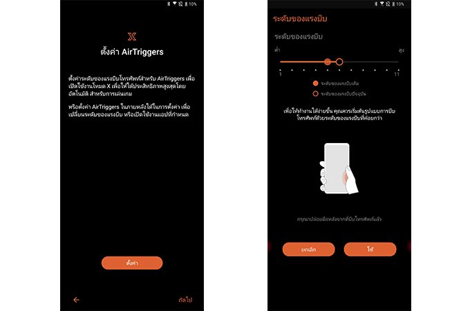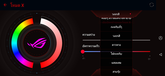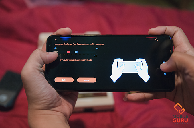 ทางเอซุสได้ใส่ลูกเล่นตัวหนึ่งเข้ามาบน ROG UI ด้วย นั้นการใช้ความสามารถของ Air Triggers ในการบีบด้านข้างตัวเครื่องพร้อมกันสองข้าง เพื่อเรียกใช้งานหรือเข้าสู่หน้าเมนู X mode ได้ และยังปรับแต่งภาพพื้นหลัง (ROG UI) ให้แสดงเอฟเฟ็กตามเมื่อเราบีบตัวเครื่องด้วย เท่มากๆ เลยล่ะครับ ซื้อคะแนนความเท่ไปได้ 10 คะแนนเลย
