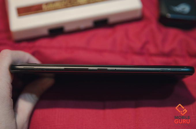 ด้านซ้ายตัวเครื่อง เมื่อแกะจุกยางออกมา จะมีช่องเชื่อมต่อแบบ 48 pin + USB-C อันที่สอง ซึ่งพอร์ตนี้ทางเอซุสออกแบบมา ให้ใช้งานร่วมกับพัดลม Aero Cooling II ที่แถมมาให้ในกล่อง ทำให้สามารถชาร์จไฟและใช้งานพัดลมได้พร้อมกัน สะดวกมากๆ เวลาเล่นเกม เพราะไม่ต้องไปชาร์จที่ตูดตัวเครื่องให้เกะกะเวลาถือเล่น
