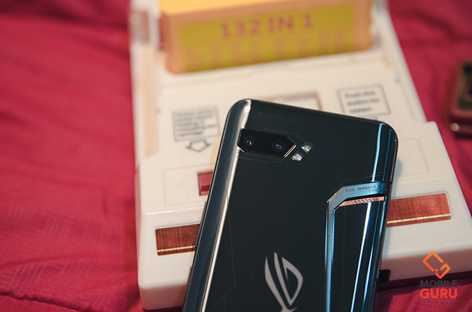 ด้านหลังตัวเครื่อง มีกล้องถ่ายรูป Dual camera ความละเอียด 48+13 ล้านพิกเซล (Main + UltraWide) พร้อมไฟแฟลช Dual LED ส่วนไฟอีกอันเป็น ROG Aura Sync สำหรับใช้งานร่วมกับเคสอุปกรณ์เสริม ทำให้แสดงไฟ RGB เหมือนบนตัวเครื่องได้ ในขณะที่ด้านขวาจะมีแถบระบายความร้อน ซึ่งได้รับการออกแบบใหม่ให้เหลือแทบเดียว แต่ระบายความร้อนได้ดีขึ้นเมื่อเทียบกับรุ่นแรก