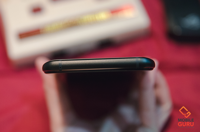 ด้านล่างตัวเครื่อง มีรูเสียบหูฟังขนาด 3.5 มิลลิเมตร, พอร์ตเชื่อมต่อ USB-C