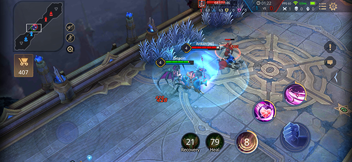 ข้ามมาที่การเล่นเกม ก็ต้องบอกว่า Vivo S1 Pro เป็นสมาร์ทโฟนอีกรุ่นหนึ่งที่ทำได้ในระดับดีเลยทีเดียว ซึ่งจากการทดสอบด้วยเกม RoV สามารถเปิดภาพแบบ HD และเปิดค่าเฟรมเรทระดับสูงได้ ในระหว่างเล่นเกม เฟรมเรทจะวิ่งอยู่ที่ 59 - 60 FPS เล่นได้ลื่นไหล มีหน่วงอยู่บ้างเล็กน้อย แต่ให้การตอบสนองค่อนข้างดี
